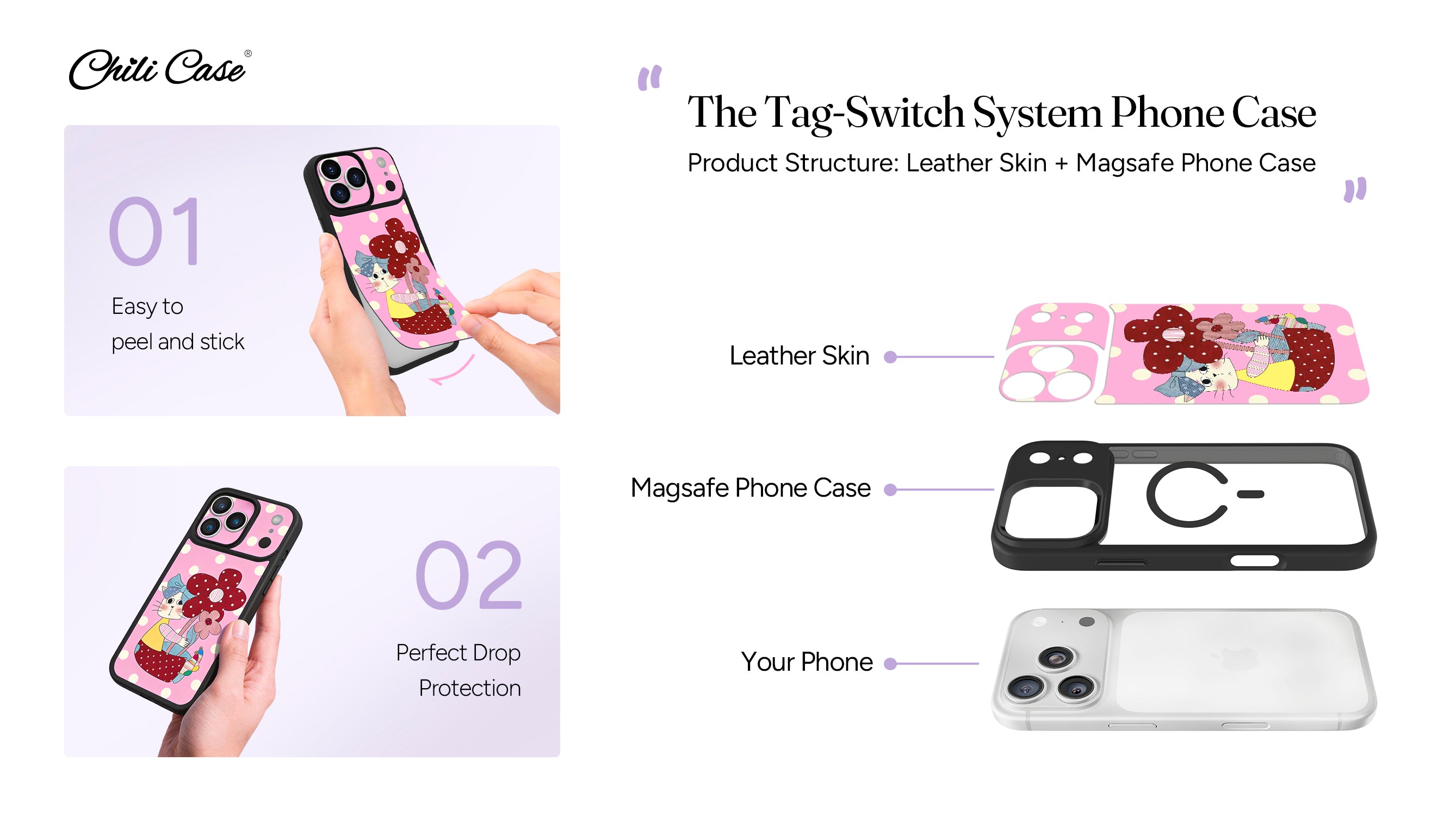 Reusable Phone Case & Removable Leather Skins for a Fresh Look Every Day.